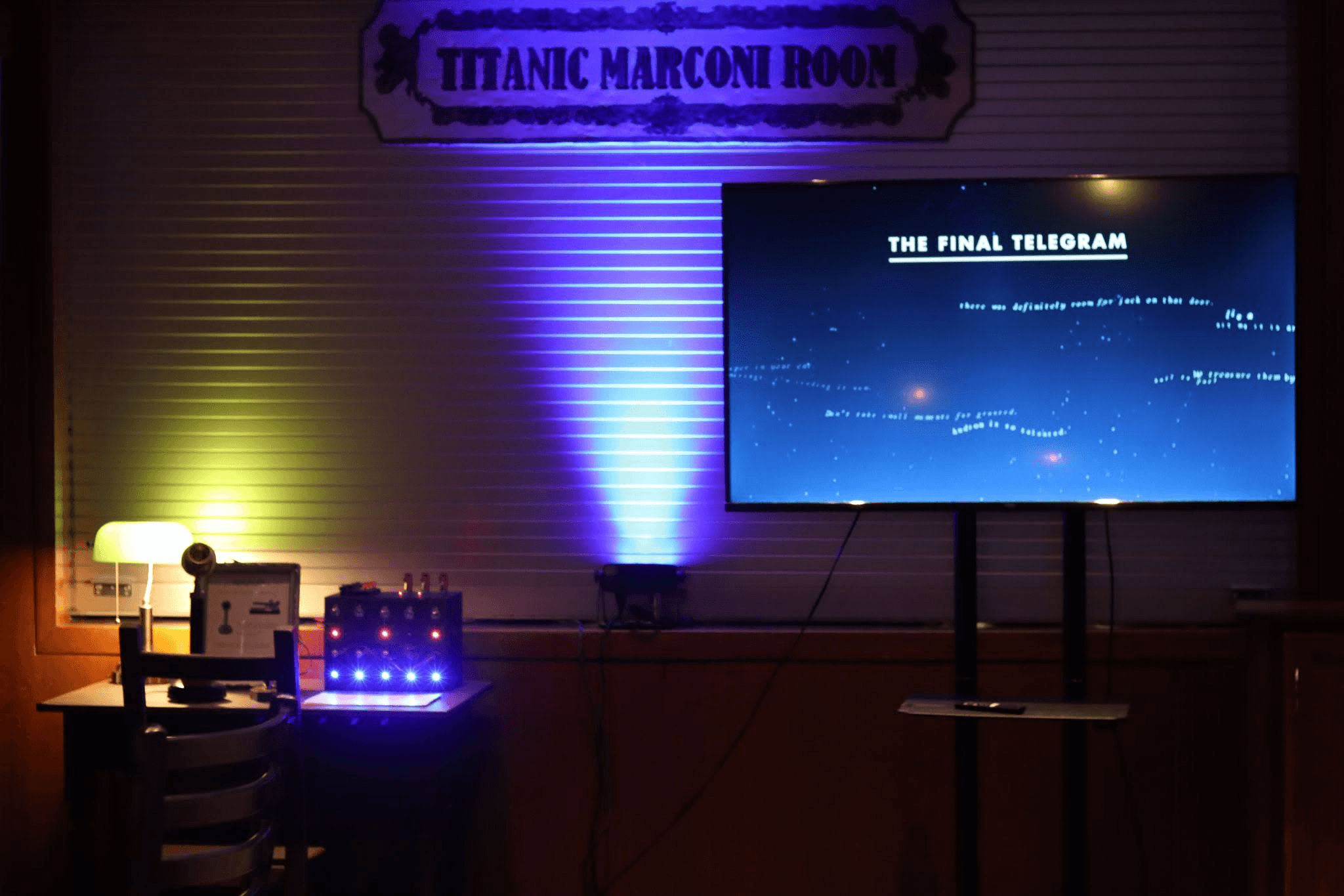The Final Telegram is an interactive installation inspired by the Titanic’s Marconi Room, allowing visitors to leave recorded messages through a vintage microphone and Morse Code key. Their voices are transformed into lines of text that gently drift across a large ocean-like display, symbolizing messages carried by the sea. The installation evokes the emotional narrative of the Titanic musical—highlighting the themes of memory, loss, and connection.